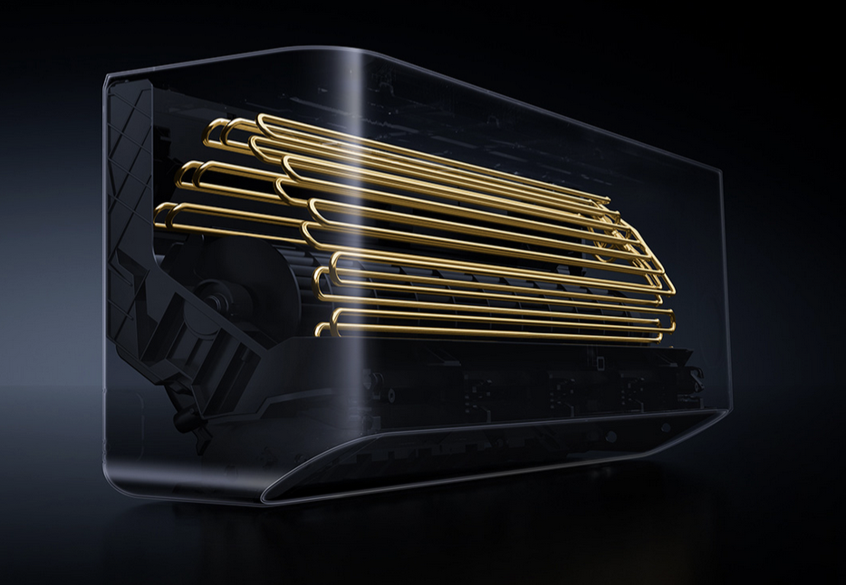 Теплообменные системы получили революционное обновление. Двухрядный конденсатор наружного блока увеличил площадь теплообмена на 82%, что означает мощный теплообмен для максимальной эффективности и гарантию стабильной работы в любых условиях. Двухрядный испаритель внутреннего блока, изготовленный из качественных материалов, обеспечивает превосходный теплообмен и оптимальное распределение температуры по всему помещению.
