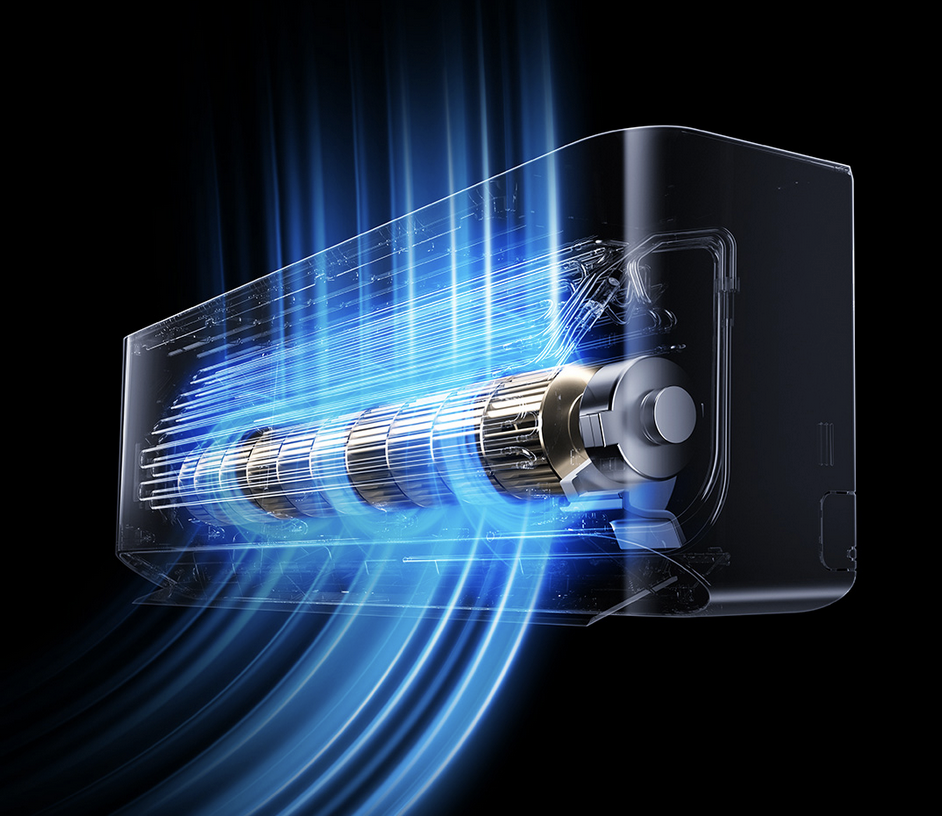 Особого внимания заслуживает 108-миллиметровый тангенциальный вентилятор, создающий мощный воздушный поток объемом 760м³/ч. Этот инновационный элемент обеспечивает равномерное распределение воздуха по всему помещению, создавая комфортную температуру всего за 3 минуты. Это не просто техническое решение — это новый опыт управления климатом в вашем доме.